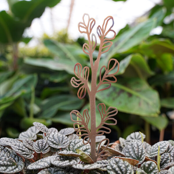 Elke Botanica is uniek. Ze worden met de hand gepatineerd (gekleurd) en dat betekent dat er iets kleur verschil kan zijn. Het RVS krijgt door het patineren een matte licht goud tot bruine uitstraling, met blauwe en paarse accenten. De Botanica zijn 31 cm hoog en passen door de brievenbus.